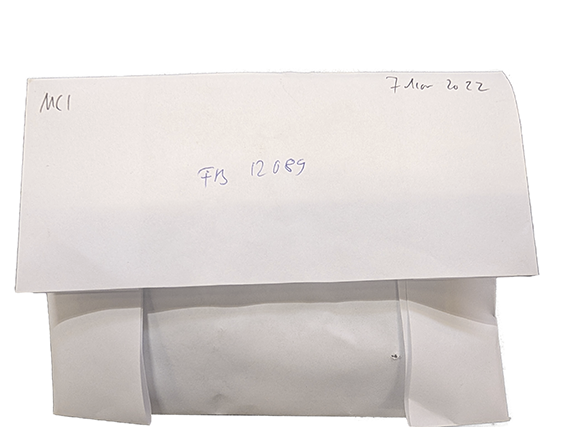 Specimen envelope for flat storage: folded with the side-flaps backwards.
