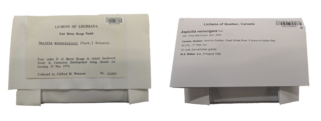 Lichen herbaria generally use two basic storage systems to file specimens: flat vs. upright. Both systems have advantages and disadvantages.