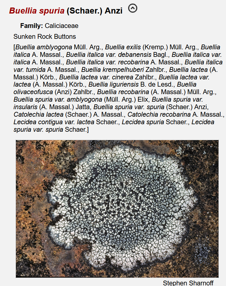Images linked to a Taxon Profile are associated with the name of the taxon, not a specimen identification. They are not backed up by specimens that can be examined. This is insofar problematic as it is not possible to verify whether the identification of the image is actually correct. The image record cannot be verified (see why it is important to collect voucher specimens when photographing lichens).