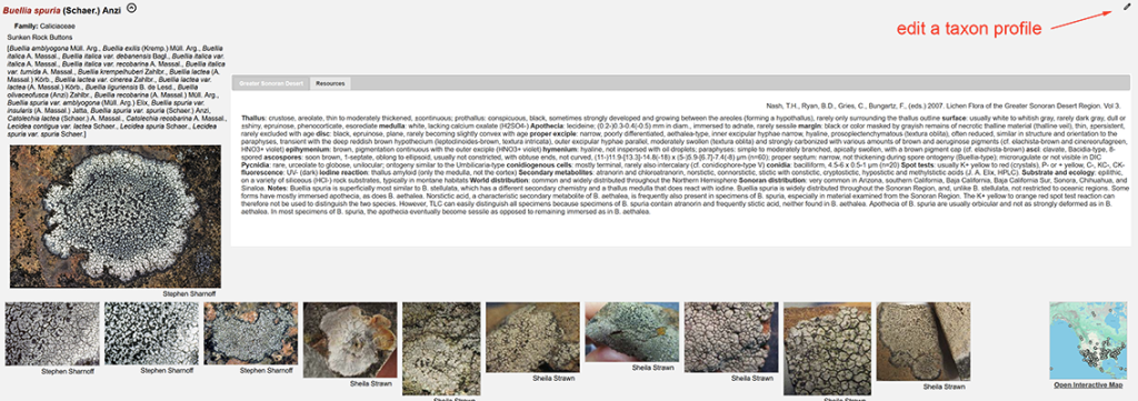 You need editor privileges to edit Taxon Profiles; the number of users able to edit these profiles is limited. If you are interested in contributing, reach out to LichenConsortium@gmail.com
